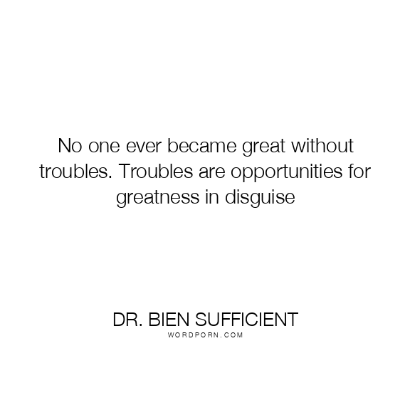 No one ever became great without troubles. Troubles are opportunities for greatness in disguise