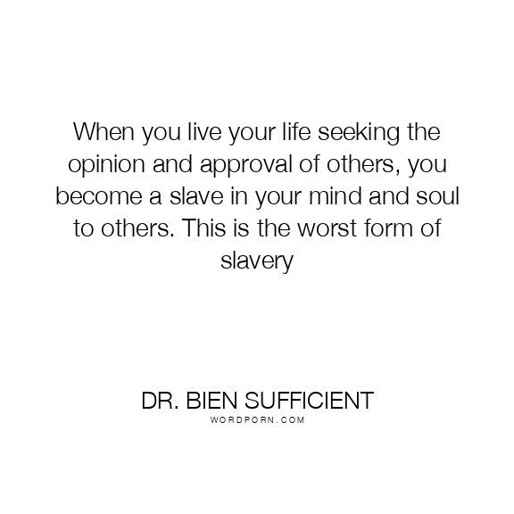When you live your life seeking the opinion and approval of others, you become a slave in your mind and soul to others. This is the worst form of slavery