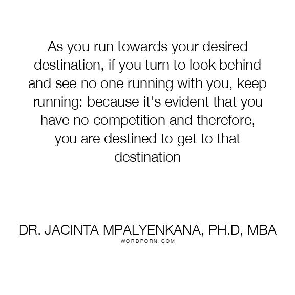 As you run towards your desired destination, if you turn to look behind and see no one running with you, keep running: because it's evident that you have no competition and therefore, you are destined to get to that destination