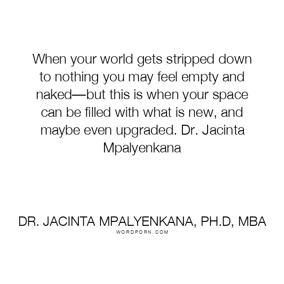 When your world gets stripped down to nothing you may feel empty and naked—but this is when your space can be filled with what is new, and maybe even upgraded. Dr. Jacinta Mpalyenkana