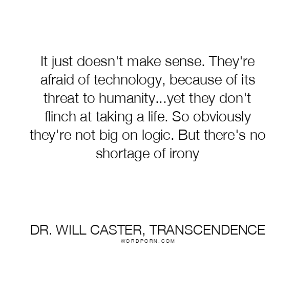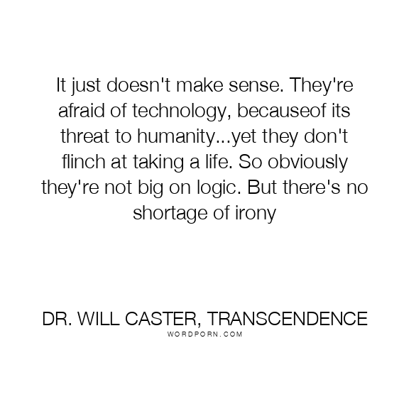 It just doesn't make sense. They're afraid of technology, because of its threat to humanity...yet they don't flinch at taking a life. So obviously they're not big on logic. But there's no shortage of irony