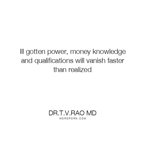 Ill gotten power, money knowledge and qualifications will vanish faster than realized