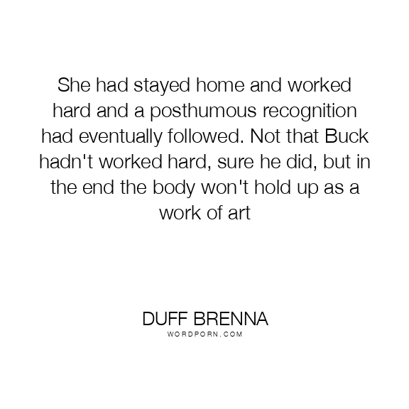 She had stayed home and worked hard and a posthumous recognition had eventually followed. Not that Buck hadn't worked hard, sure he did, but in the end the body won't hold up as a work of art