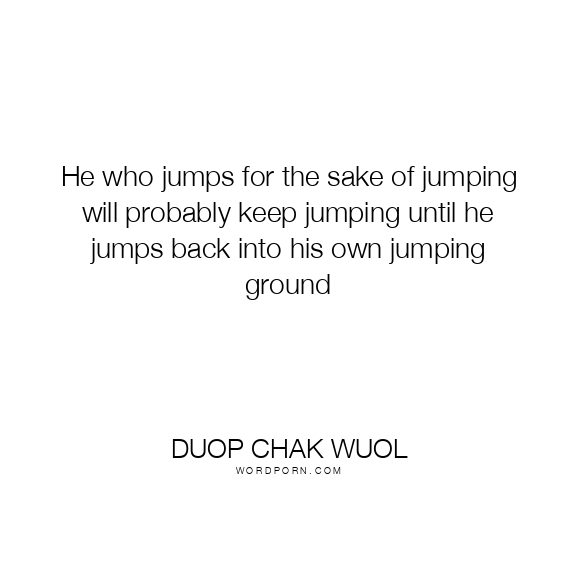 He who jumps for the sake of jumping will probably keep jumping until he jumps back into his own jumping ground