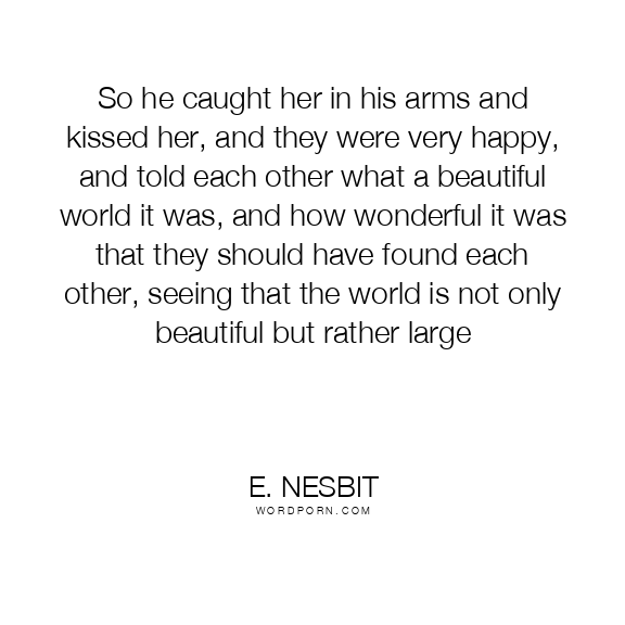 So he caught her in his arms and kissed her, and they were very happy, and told each other what a beautiful world it was, and how wonderful it was that they should have found each other, seeing that the world is not only beautiful but rather large
