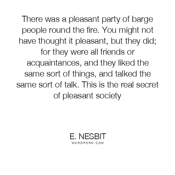 There was a pleasant party of barge people round the fire. You might not have thought it pleasant, but they did; for they were all friends or acquaintances, and they liked the same sort of things, and talked the same sort of talk. This is the real secret of pleasant society