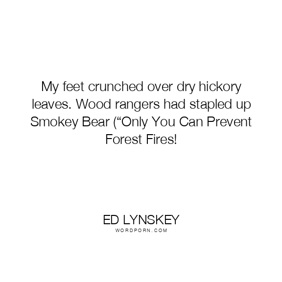 My feet crunched over dry hickory leaves. Wood rangers had stapled up Smokey Bear (“Only You Can Prevent Forest Fires!
