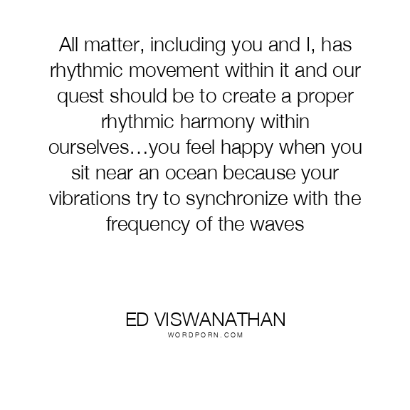 All matter, including you and I, has rhythmic movement within it and our quest should be to create a proper rhythmic harmony within ourselves…you feel happy when you sit near an ocean because your vibrations try to synchronize with the frequency of the waves