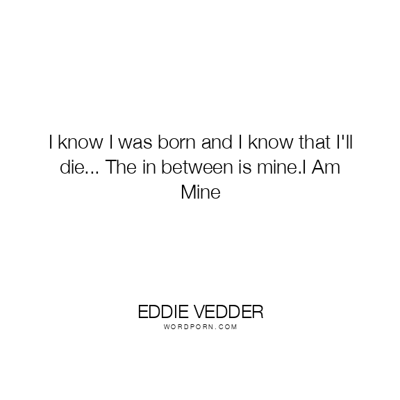 I know I was born and I know that I'll die... The in between is mine.I Am Mine