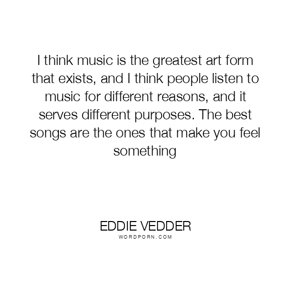 I think music is the greatest art form that exists, and I think people listen to music for different reasons, and it serves different purposes. The best songs are the ones that make you feel something