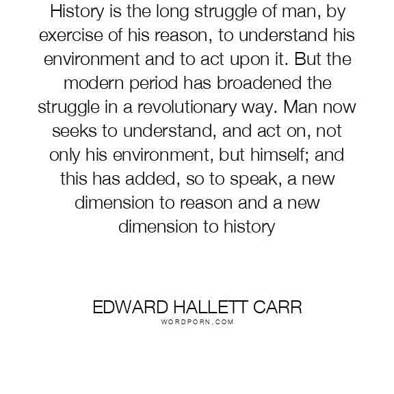 History is the long struggle of man, by exercise of his reason, to understand his environment and to act upon it. But the modern period has broadened the struggle in a revolutionary way. Man now seeks to understand, and act on, not only his environment, but himself; and this has added, so to speak, a new dimension to reason and a new dimension to history