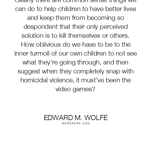 Clearly there are common sense things we can do to help children to have better lives and keep them from becoming so despondent that their only perceived solution is to kill themselves or others. How oblivious do we have to be to the inner turmoil of our own children to not see what they're going through, and then suggest when they completely snap with homicidal violence, it must've been the video games?