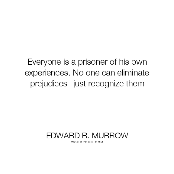 Everyone is a prisoner of his own experiences. No one can eliminate prejudices--just recognize them