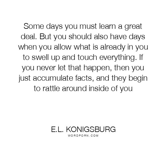 Some days you must learn a great deal. But you should also have days when you allow what is already in you to swell up and touch everything. If you never let that happen, then you just accumulate facts, and they begin to rattle around inside of you