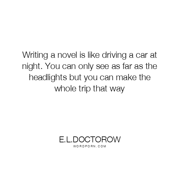 Copy Image Writing a novel is like driving a car at night. You can only see as far as the headlights but you can make the whole trip that way Moms Typewriter A A SAVE THIS IMAGE