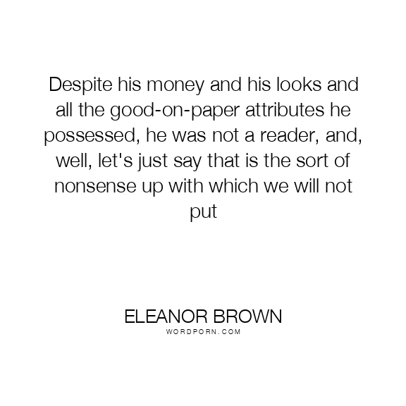 Despite his money and his looks and all the good-on-paper attributes he possessed, he was not a reader, and, well, let's just say that is the sort of nonsense up with which we will not put
