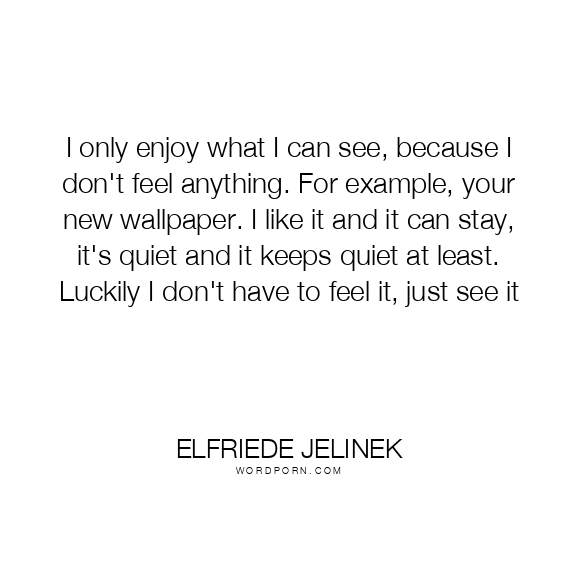 I only enjoy what I can see, because I don't feel anything. For example, your new wallpaper. I like it and it can stay, it's quiet and it keeps quiet at least. Luckily I don't have to feel it, just see it