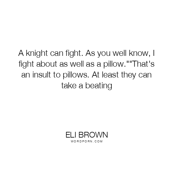 Copy Image A knight can fight. As you well know, I fight about as well as a pillow.""That's an insult to pillows. At least they can take a beating Moms Typewriter A A SAVE THIS IMAGE