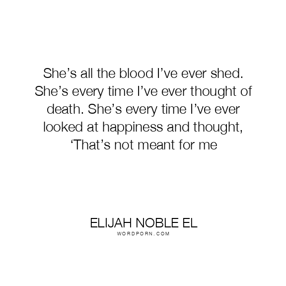 She’s all the blood I’ve ever shed. She’s every time I’ve ever thought of death. She’s every time I’ve ever looked at happiness and thought, ‘That’s not meant for me