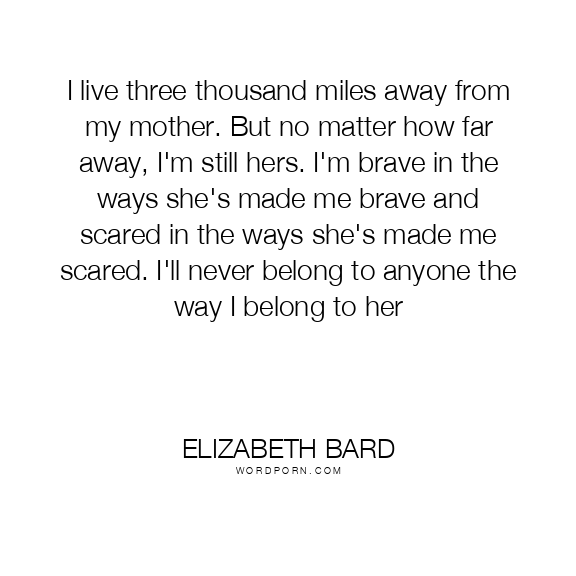 I live three thousand miles away from my mother. But no matter how far away, I'm still hers. I'm brave in the ways she's made me brave and scared in the ways she's made me scared. I'll never belong to anyone the way I belong to her