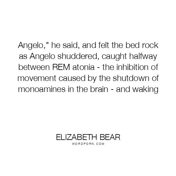 Angelo," he said, and felt the bed rock as Angelo shuddered, caught halfway between REM atonia - the inhibition of movement caused by the shutdown of monoamines in the brain - and waking