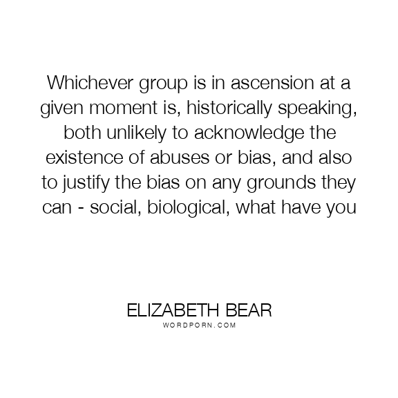 Whichever group is in ascension at a given moment is, historically speaking, both unlikely to acknowledge the existence of abuses or bias, and also to justify the bias on any grounds they can - social, biological, what have you