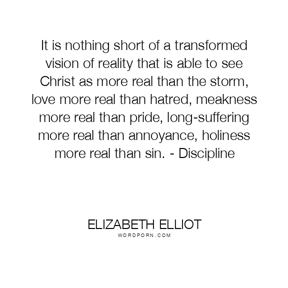 It is nothing short of a transformed vision of reality that is able to see Christ as more real than the storm, love more real than hatred, meakness more real than pride, long-suffering more real than annoyance, holiness more real than sin. - Discipline