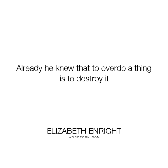 Already he knew that to overdo a thing is to destroy it