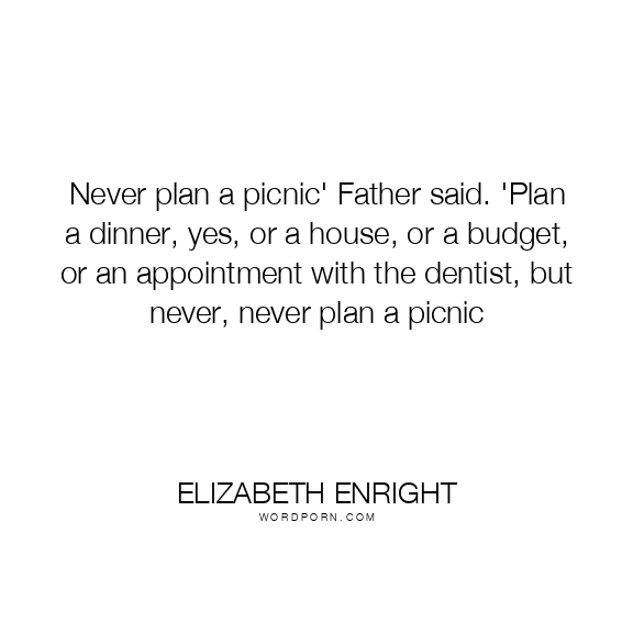 Never plan a picnic' Father said. 'Plan a dinner, yes, or a house, or a budget, or an appointment with the dentist, but never, never plan a picnic