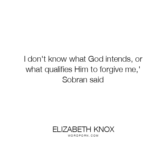Elizabeth Knox quote. I don't know what God intends, or what qualifies Him to forgive me,' Sobran said