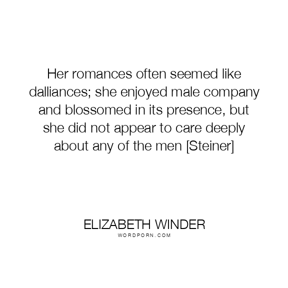 Her romances often seemed like dalliances; she enjoyed male company and blossomed in its presence, but she did not appear to care deeply about any of the men [Steiner]