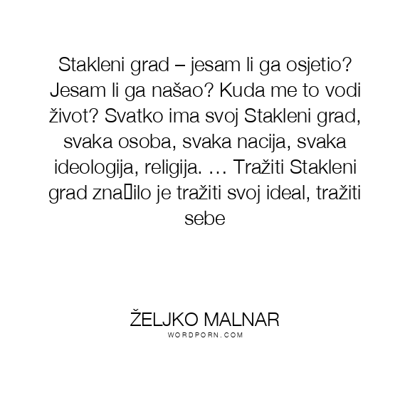 Stakleni grad – jesam li ga osjetio? Jesam li ga našao? Kuda me to vodi život? Svatko ima svoj Stakleni grad, svaka osoba, svaka nacija, svaka ideologija, religija. … Tražiti Stakleni grad značilo je tražiti svoj ideal, tražiti sebe