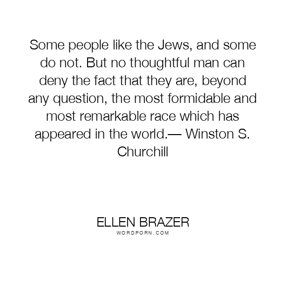 Some people like the Jews, and some do not. But no thoughtful man can deny the fact that they are, beyond any question, the most formidable and most remarkable race which has appeared in the world.— Winston S. Churchill