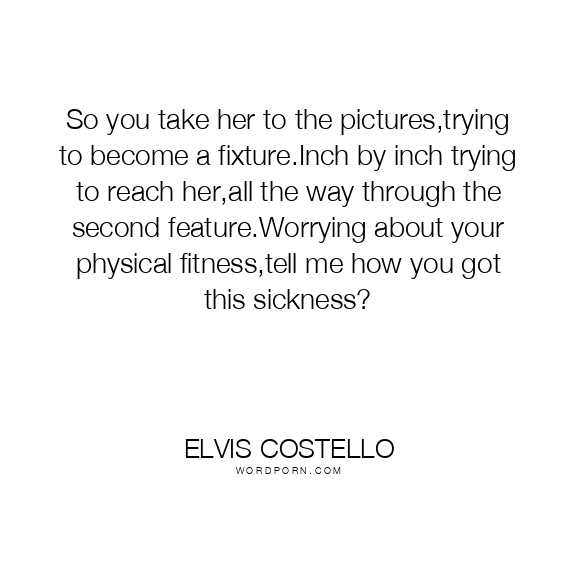 So you take her to the pictures,trying to become a fixture.Inch by inch trying to reach her,all the way through the second feature.Worrying about your physical fitness,tell me how you got this sickness?