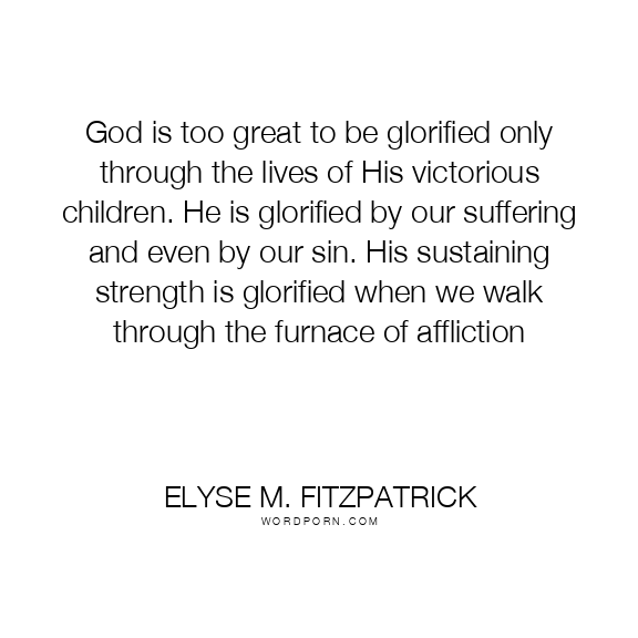 God is too great to be glorified only through the lives of His victorious children. He is glorified by our suffering and even by our sin. His sustaining strength is glorified when we walk through the furnace of affliction