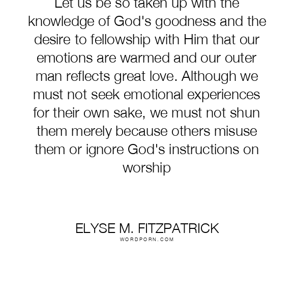 Let us be so taken up with the knowledge of God's goodness and the desire to fellowship with Him that our emotions are warmed and our outer man reflects great love. Although we must not seek emotional experiences for their own sake, we must not shun them merely because others misuse them or ignore God's instructions on worship