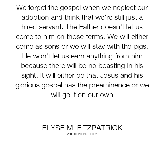 We forget the gospel when we neglect our adoption and think that we're still just a hired servant. The Father doesn't let us come to him on those terms. We will either come as sons or we will stay with the pigs. He won't let us earn anything from him because there will be no boasting in his sight. It will either be that Jesus and his glorious gospel has the preeminence or we will go it on our own