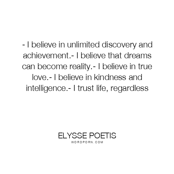 - I believe in unlimited discovery and achievement.- I believe that dreams can become reality.- I believe in true love.- I believe in kindness and intelligence.- I trust life, regardless