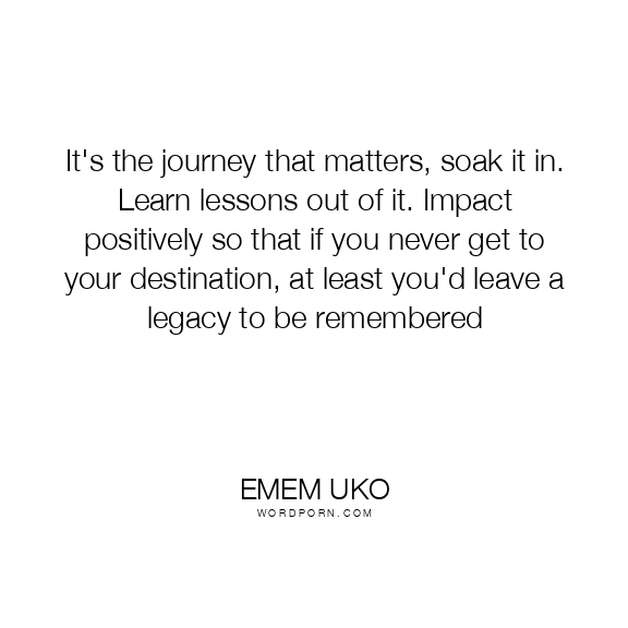 It's the journey that matters, soak it in. Learn lessons out of it. Impact positively so that if you never get to your destination, at least you'd leave a legacy to be remembered