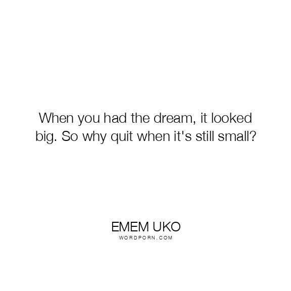 When you had the dream, it looked big. So why quit when it's still small?
