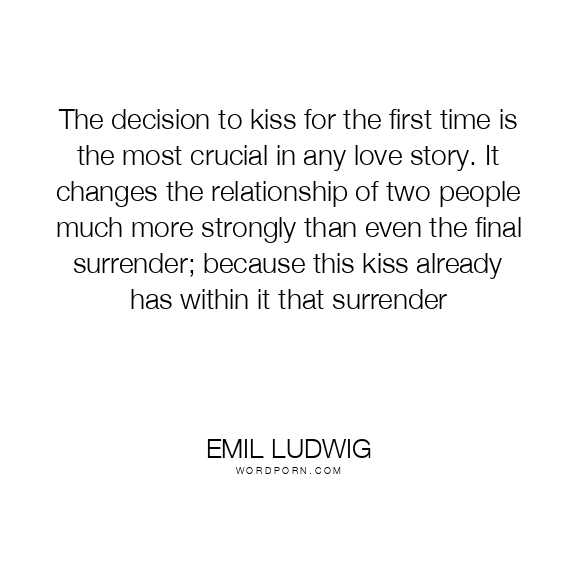 The decision to kiss for the first time is the most crucial in any love story. It changes the relationship of two people much more strongly than even the final surrender; because this kiss already has within it that surrender