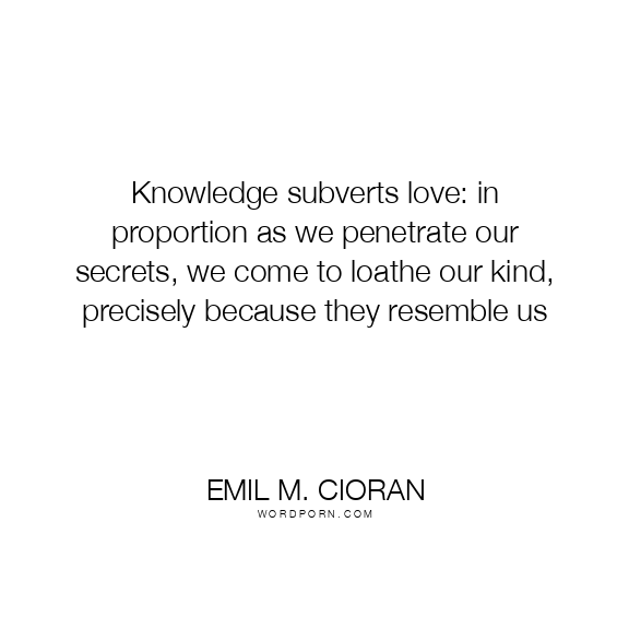 Knowledge subverts love: in proportion as we penetrate our secrets, we come to loathe our kind, precisely because they resemble us