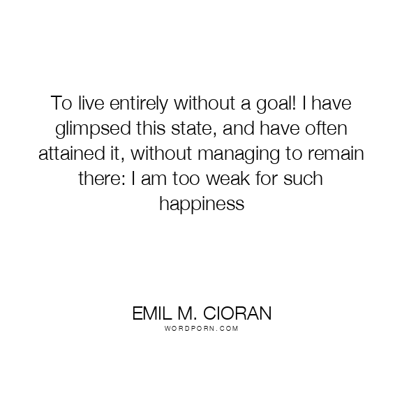 To live entirely without a goal! I have glimpsed this state, and have often attained it, without managing to remain there: I am too weak for such happiness