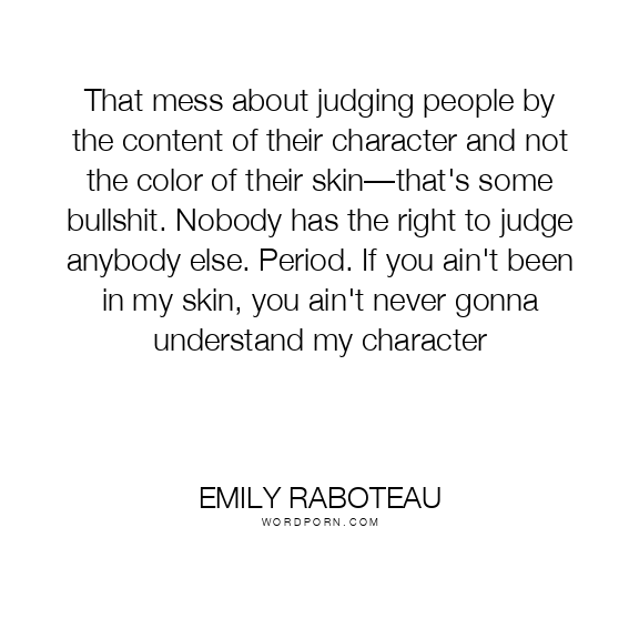 That mess about judging people by the content of their character and not the color of their skin—that's some bullshit. Nobody has the right to judge anybody else. Period. If you ain't been in my skin, you ain't never gonna understand my character