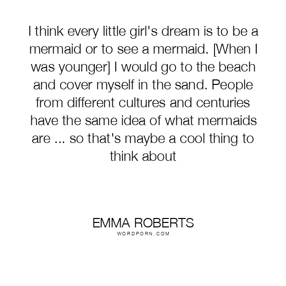 I think every little girl's dream is to be a mermaid or to see a mermaid. [When I was younger] I would go to the beach and cover myself in the sand. People from different cultures and centuries have the same idea of what mermaids are ... so that's maybe a cool thing to think about