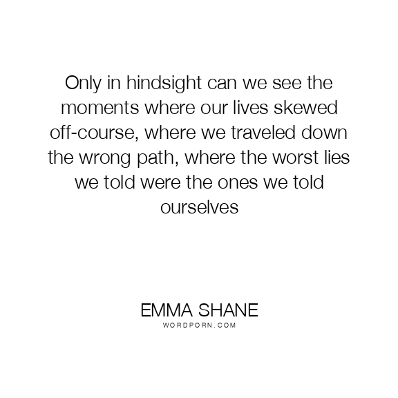 Only in hindsight can we see the moments where our lives skewed off-course, where we traveled down the wrong path, where the worst lies we told were the ones we told ourselves