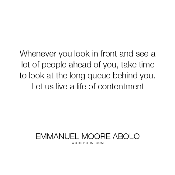 Copy Image Whenever you look in front and see a lot of people ahead of you, take time to look at the long queue behind you. Let us live a life of contentment Moms Typewriter A A SAVE THIS IMAGE