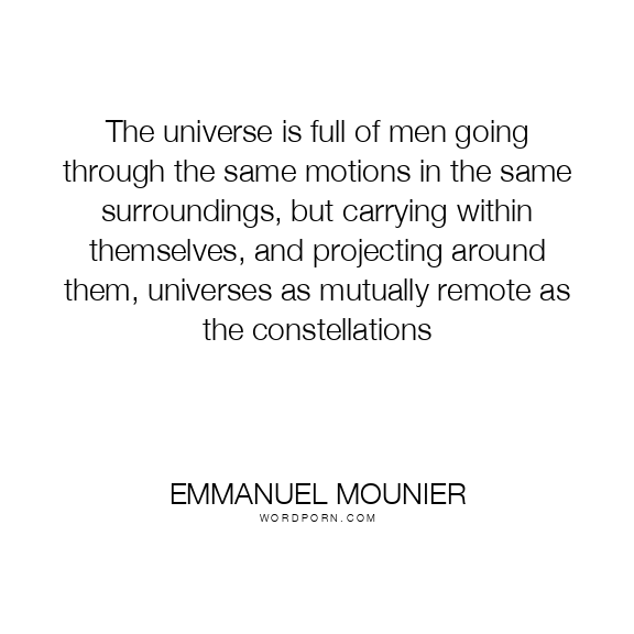 The universe is full of men going through the same motions in the same surroundings, but carrying within themselves, and projecting around them, universes as mutually remote as the constellations
