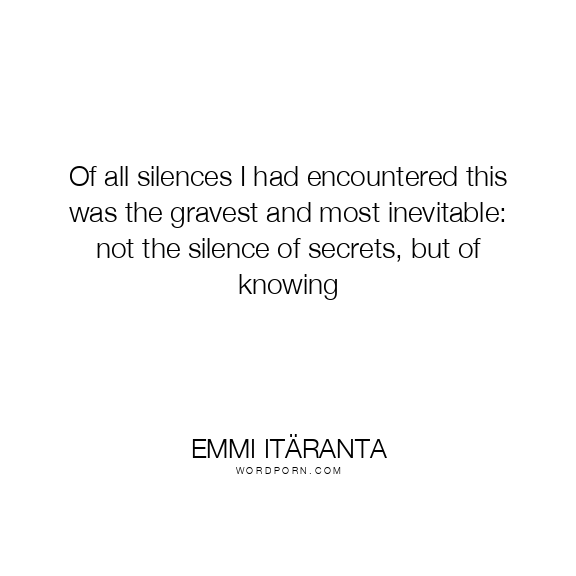 Of all silences I had encountered this was the gravest and most inevitable: not the silence of secrets, but of knowing