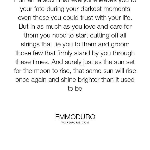 Human ia such that everyone leaves you to your fate during your darkest moments even those you could trust with your life. But in as much as you love and care for them you need to start cutting off all strings that tie you to them and groom those few that firmly stand by you through these times. And surely just as the sun set for the moon to rise, that same sun will rise once again and shine brighter than it used to be